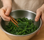 - 찬물에 바로 헹궈 잔열을 제거한 뒤 물기를 꼭 짭니다.