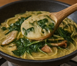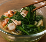- 눈개승마·해물을 넣고 1분간 가볍게 뒤섞은 뒤 접시에 산뜻하게 담아냅니다.