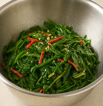 - 무치기 : 나물을 양념 볼에 넣고 젓가락보다 손으로 30회 가볍게 뒤섞기.