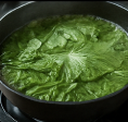 - 깨끗이 씻은 머위잎을 끓는 물에 소금 한 꼬집 넣고 30초 데칩니다.