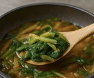 - 된장 풀기 : 된장 1.5T를 체에 밭치며 풀어야 콩껍질이 거칠지 않고, 곰취 향과 균형이 맞는다.