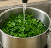 신선한 나물을 오래 즐기려면 첫 단계인 세척과 보관이 가장 중요합니다. 방풍나물은 잔가시와 연한 잎이 뒤섞여 있어, 처음 다루는 사람에게는 손질이 까다로울 수 있습니다. 그러나 몇 가지 요령만 알면 손쉽게 오랫동안 향긋함을 유지할 수 있습니다. 세척 전, 먼저 잔가시가 돋은 굵은 줄기는 손톱으로 살짝 뜯어내고, 어린 잎은 그대로 두어 질감 대비를 살려 보세요. 큰 볼에 나물을 담고, 식초 반 큰술을 탄 물을 받아 5분간 담가두면 흙먼지가 가라앉습니다. 이후 흐르는 물로 두 번, 미지근한 물로 한 번 더 헹궈주면 찬물만 사용했을 때보다 잔털이 부드럽게 가라앉아 먹기 좋습니다. 물기를 없애는 과정도 중요합니다. 채반에 올려 10분간 자연 건조시킨 뒤, 키친타월로 살짝 눌러 표면의 수분을 제거합니다. 이때 너무 힘을 주면 잎이 상할 수 있으니 조심하세요. 일주일 이내 조리할 예정이라면 ‘흡수지 랩핑’ 방법을 추천합니다. 키친타월을 적당한 크기로 잘라 나물을 두세 겹 감싼 뒤, 밀폐용기에 세워 보관하면 아래쪽부터 물이 빠져나와도 수분이 흡수지에 머물러 잎이 무르지 않습니다. 냉장 온도는 2–4℃가 가장 알맞습니다. 만약 2주 이상 보관해야 한다면 살짝 데친 후 급속 냉동하는 것이 좋습니다. 데칠 때는 소금을 조금 넣어 색을 살리고, 찬물에 헹군 뒤 물기를 짜고 1회 분량씩 지퍼백에 넣어 공기를 최대한 빼주세요. 냉동 전, 나물을 한 번 더 깨끗이 펴서 얼리면 붙지 않아 한 움큼씩 떼어쓰기가 편합니다. 해동은 냉장고에 3시간 정도 두기만 해도 충분합니다. 전자레인지 해동은 향이 날아갈 수 있으니 피하세요.