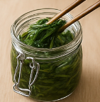 회사 동료들과 도시락을 나눴을 때, 이 장아찌 덕분에 ‘봄철 살찌지 않는 밥반찬’이라는 별명도 얻었습니다. 매콤한 볶음고추장 대신 곁들이면 느끼함도 잡아주고, 예상외로 치즈와도 궁합이 좋아 샌드위치에 넣어보니 의외의 조화를 이뤘습니다. 풍미가 더욱 복합적으로 변해 색다른 브런치 메뉴로 추천드립니다. 냉장 숙성 열흘쯤 지나면 짙은 초록빛 대신 갈색이 돌기 시작하는데, 이때 잘게 다져 마요네즈와 버무려 스프레드처럼 발라 보세요. 흑미식빵과 베이컨, 양상추를 곁들이면 짭짤·고소·달콤 각 맛이 층층이 살아나, 손님 초대용 핑거푸드로도 더할 나위 없습니다. 또 한 가지, 장아찌 국물을 묽게 희석해 드레싱으로 활용하는 방법도 있습니다. 레몬즙 한 큰술과 올리브유를 1:1로 섞고, 장아찌 국물을 한 큰술 넣어 잘 흔들어 주면 자연 발효된 간장 향이 샐러드에 깊이를 주어 식욕을 돋우죠. 이렇게 버리지 않고 재활용하는 작은 습관이 제겐 지구를 위한 실천으로도 느껴집니다. 덕분에 만족도 최고!