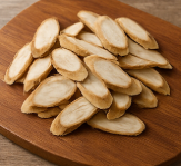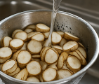 - 0.2 cm 두께로 어슷 썰어 50 ℃에서 30분간 예열한 오븐에 2시간 정도 천천히 말리면 향이 깊어집니다.