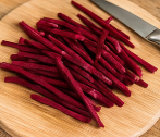 - 얇게 저민 비트를 올리브유 1큰술에 약불로 5분 볶아 단맛을 끌어냅니다.