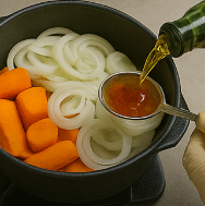 멸치 다시팩을 물 600 mL에 8분 끓여 기본 육수를 만든 뒤 건더기는 빼주세요. 감자는 닭보다 5분 늦게, 당근은 닭과 동시에, 양파·파·고추는 마지막 7분에 넣어야 씹을 때 각각의 달콤함이 살아납니다. 타이밍이 곧 닭볶음탕 황금레시피의 감칠맛 밸런스를 책임집니다.