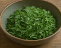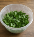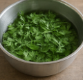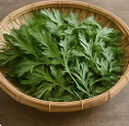 - 생쑥 60 g을 깨끗이 씻어 끓는 물에 30초 데친 뒤 찬물에 헹궈 물기를 꼭 짠다.