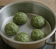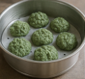 - 쑥을 섞어 한입 크기로 주먹밥처럼 뭉친다.