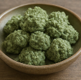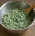 - 데친 쑥 55 g과 견과류를 넣어 살살 섞는다. 과하게 치대면 기포가 빠져 식감이 무거워진다.