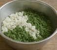 - 쑥 50 g을 잘게 다져 넣고, 반죽이 부스러질 정도로만 섞는다.