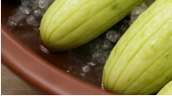 A. 28 ℃를 넘기면 연산균이 자라 쓴맛이 날 수 있습니다. 그럴 땐 첫날밤부터 얼음팩 두 개를 통 옆에 대어 온도를 24 ℃ 이하로 유지해 주세요. - Q. 절임 5일째에 표면에 흰막이 떴는데 버려야 할까요?