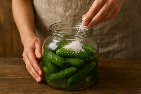 - 소금 선택 – 천일염을 곱게 갈아 쓰면 염도가 일정하고 미네랄이 살아 있어 오이 비린내를 잡아줍니다. 정제염보다는 약간 심심하지만 깊은 감칠맛이 남습니다.