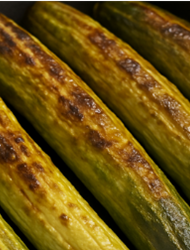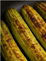 또는 깨끗한 프라이팬이나 팬에 오이를 겉면만 노릇하게 구워줍니다. → 껍질이 약간 갈색이 돌면서 표면의 수분이 날아가고 절임 시간이 단축됩니다.