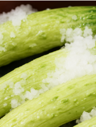- 세척 요령 – 흐르는 물에 30 초 돌려 씻은 뒤, 굵은소금 한 줌을 손바닥에 올려 오이 표면을 문질러 잔가시와 이물질을 제거합니다. 이렇게 하면 껍질이 살짝 긁혀 소금이 잘 스며드는 동시에, 향을 방해하는 먼지 냄새가 줄어듭니다.