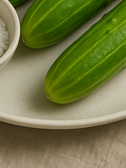 - 세척 방법 – 굵은소금 한 줌을 손바닥에 쥐고 껍질을 살살 문질러 녹색 왁스층을 제거합니다. 미지근한 물에 30 초 헹군 뒤 키친타월로 완전히 물기를 닦아야 절임 소금 농도가 일정해집니다.